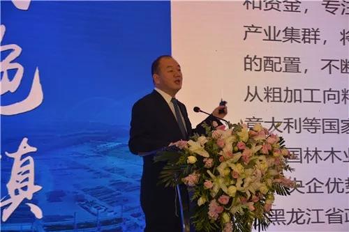 作为主办方之一,中林时代控股有限公司总经理王利伟在致辞中介绍了中林集团三大产业链与三大战略,以及中林时代所属新民洲港和镇江国林生态产业城的项目规划与建设情况,并表示“未来规划将把新民洲建设成长江流域最大的木材中转地和国家木材战略加工储备交易基地。”