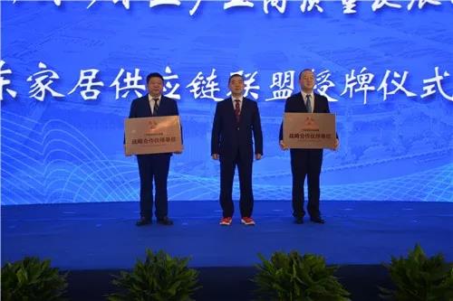 会上,镇江国林生态产业城有限公司、新民洲临港产业园管委会、南京林业大学三方,共同签署《产学研合作框架协议书》。广东家居供应链联盟向新民洲临港产业园、镇江国林生态产业城授牌,吸纳两家单位加入联盟。